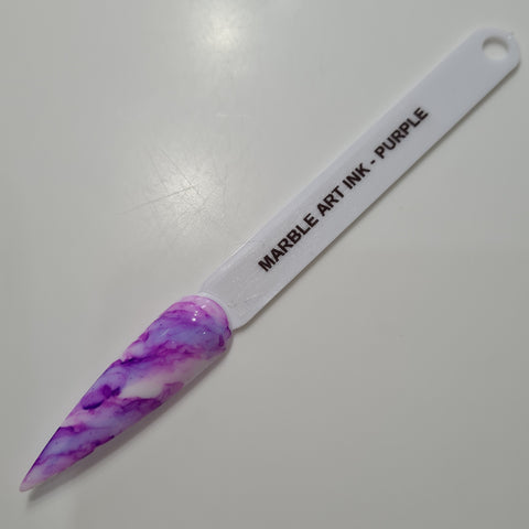 To prepare the nail, apply 2 coats of gel polish colour, top coat, cure and wipe. Apply the Marble Art Ink in 2 or 3 diagonal lines (or randomly if you choose!) and blend out using the Clear Blooming Ink.